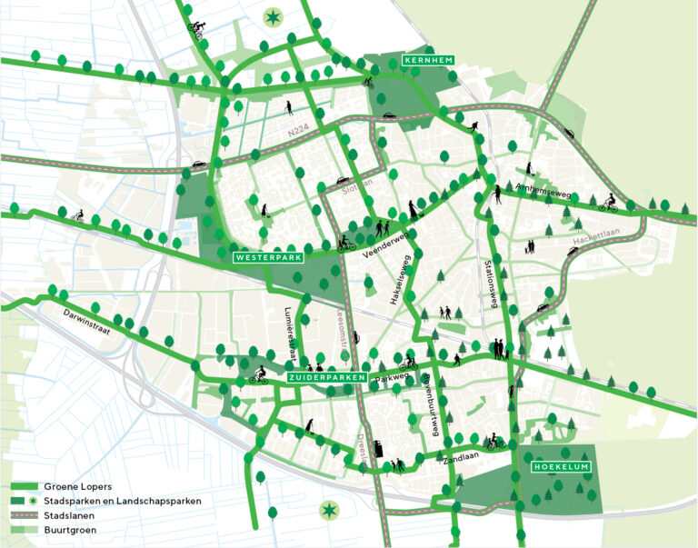 Groene Lopers (groen-blauwe structuren met langzaamverkeersroutes tussen de stadsdelen en ommeland)