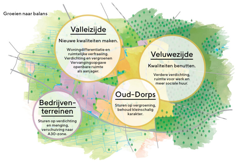 Met het Ontwikkelkader wordt de groei van Ede–stad aangegrepen om de balans in de stad te herstellen door ‘verbinden en vergroenen’ en ‘versterken en verdichten’.